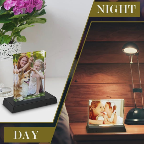 personalized gift, custom crystal frame, LED photo frame, light up photo frame, anniversary gift, wedding gift, birthday gift, memorial gift, custom keepsake, colorful LED frame, 3D crystal photo, engraved crystal, unique gift idea, home decor gift, Valentine's Day gift, Mother's Day gift, Father's Day gift, Christmas gift, Breakthrough Collection.